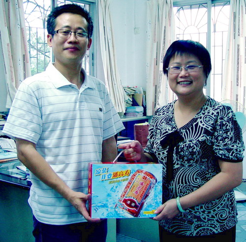 教师们表示,因长期讲课,他们都不同程度患有上呼吸道病患,枇杷膏和润喉糖清咽利嗓,正好呵护嗓子。程经理代表公司向尊敬的老师们献上了节日的祝福,并表示,人民教师默默奉献着自己,潘高寿希望藉着教师节向教师们献上一份爱心,表达对教育事业的支持。