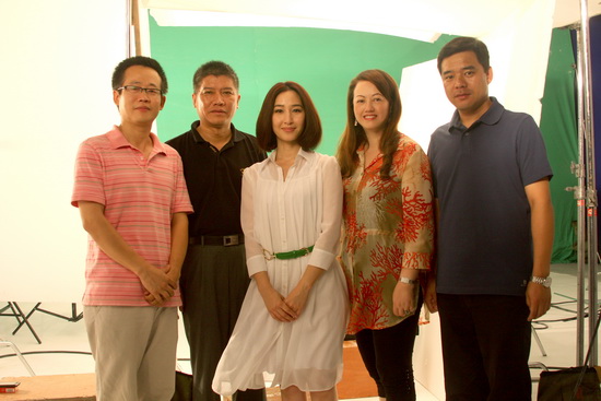 公司和产品营销中心主要领导亲临拍摄现场跟进相关工作,从左至右分别为市场总监程宏辉、公司副总经理徐文流、影视明星关咏荷、市场部副经理戴梅和销售二部总监王运龙
