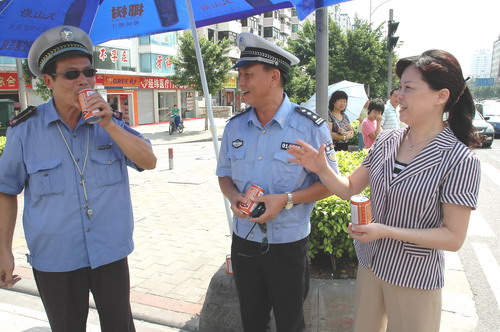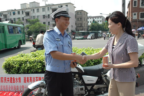 在接受广东电视台、广州电视台G4节目采访时,郑书记说:“夏季,因为长时间站在高达40多度马路中间执勤,吸入大量的灰尘和汽车尾气,70%的交警战士都患有不同程度的咽喉炎,他们更需要社会的理解、支持和关心。为炎炎夏日下坚守岗位的交警战士送上清润降火的凉茶只是潘高寿为创建文明城市、卫生城市奉献的一份爱心。希望这份爱心,能给交警战士们带来一丝清凉和无限滋润。海珠区交警大队黄副大队长对潘高寿表示感谢,称海珠区交警大队的200多名交警战士将继续坚守岗位,为维护良好的交通秩序和交通安全作贡献,并希望能调动广大市民、司机和更多的社会力量,全面推动交通安全宣传、参与创建卫生城市建设,营造和谐社会。