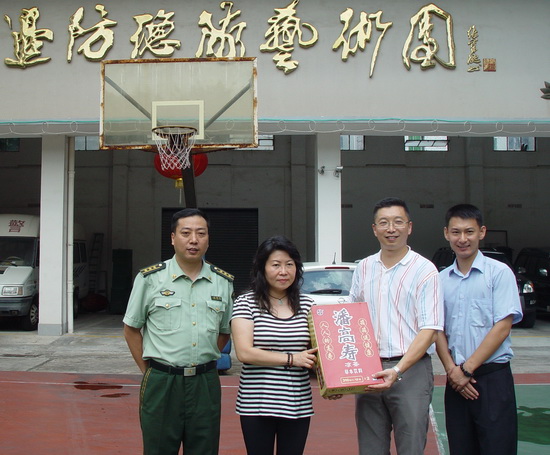 7月15日,“八一”建军节将至,我司工会、营销中心代表公司向武警广东边防总队艺术团送上节日的慰问,为艺术团武警战士们送上我司消暑的凉茶、清热的龟苓膏、润嗓的润喉糖等。