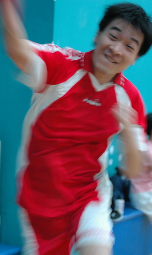 吴伟涛 有“电脑小神童”之昵称,在资讯部里,电话响个不停,几成他的专线。无他,公司各部、各车间的电脑疑难杂症、网络问题都找他诊断。“小涛”、“小涛”声声呼唤,他旋即“救火”,几下功夫,手到擒来,简直“神”了。而说他“小”,皆因他有童真,有点腼腆,没点机心。其实啊,他可软硬兼备啊。软者,一如他生肖属性,“绵羊“得很,态度随和,任讲唔嬲;相反,每当工作状态中就焕发出他每星期两次在羽毛球场上雄起的扣杀劲,挺硬朗(如图),“野狼”得很,果有点“陈金”的味道,也赢得姑娘“不少”掌声。说真的,他“不小”了,早届适婚龄,却不急。“大丈夫何患无”,“你都傻嘎”他笑嘻嘻一句口头禅,再把手一指,又埋首乐在他的电脑世界里。