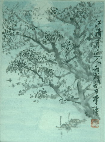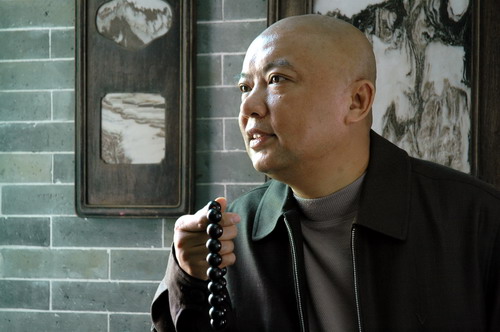 “大隐隐于市”。他常躲进“小楼成一统”(可以一、两个月足不出户)。在耕砚堂里手拨着念珠坐禅般地在明式的紫檀官帽椅上“默以养真”(篆刻章语),去觉悟心中的佛。渐渐人也变得“佛头佛脑”,崇尚“大象无形”、“大美无言”之境界。怪不得他的画没有脂粉气,乍看并不入眼,却贵在似与不似之间。我曾自恃当年学画比他早(当年他家还挂我的画),对他的画妄加评论,而他多是笑而不答。“谁享静中缘”。以后方渐有所悟。他的画不花俏,要静心才看到妙着。急功近利、浮躁者是领悟不到、品味不出的。原来欣赏之乐还得先有一个娴静与明净的心境。