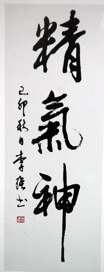 他字、画、印兼得,无所不精。他的书画、篆刻集,一本比一本有料。他又喜收藏古砚奇石,宋、明朝代的、康熙年间的砚石让人大开眼界。在耕砚堂里,他常自一边品着陈年普洱茶,听着专业胆机飘来的悠扬乐韵,一边泼墨挥毫,吟诗作对。“百里连绵势,层峦积翠重,云涛来又去,变化万千峰。”他的诗里有画,画中有诗,还有——据说,有一位姓侯的职业经理人曾为工作焦虑,经朋友介绍认识李强后,渐渐爱上了他的画,说好过去看心理医生。他收藏李强的画上百幅,看得着迷时,有一晚突然电话李强,说在画中见到了佛……。看似神奇,也不奇,正所谓“心即是佛”。李强的画自有一种让人心平气和魔力。他山水画有黄宾虹的遗风意韵,颇有气势。云雾烟霞浑然一体,带出几分逸气、一股灵动之气。这韵势与他的学养修行有关。他肯下笨功夫,大至丈二的画他会画上个把月,层层渲染,能让画作浑厚而通透;小不盈掌的“小品画”他也要花上几小时,精雕细琢,于小见大。是次画展就推出了他的大批小品。看“一花一叶”、“一山一水”;好让“天下知春”,处处见精神气象。于画界一时无两。