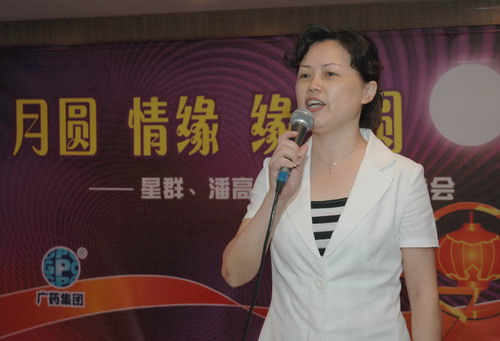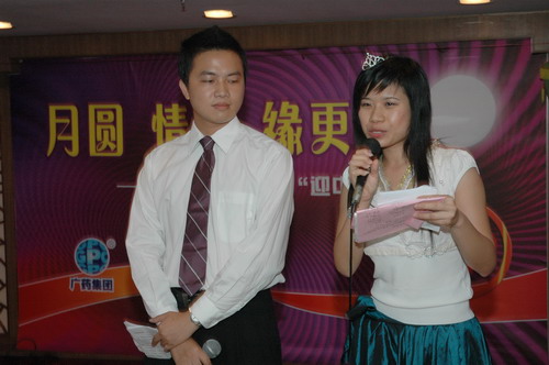 苏广丰先生、郑楠女士、魏大华先生分别在晚会上致辞。他们在致辞中都表示这是两家企业第一次一起庆中秋,希望这次活动能带给星群、潘高寿两家企业的新老员工一份“家”的感觉,并祝大家中秋快乐、美满幸福。明月当前,苏总还特别对在座的新员工提出了三个愿望,希望他们充满激情地奋斗、尽快熟悉业务、大胆创新。最后他充满激情地寄予了希望:“企业的美好明天是属于你们的”。