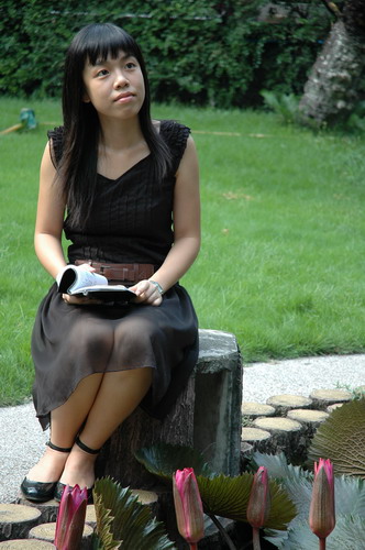 这不,近日,她不辞劳苦、崭露新角,见报率比我当年诚然高,新老的衔接、提携、是自然的事。搭配。可见她悟性高、潜力大,前途无量啊。前途漫漫,愿扶助她,于是乎,为她写来为她影。那天拍照,追着阳光,上山坡,绕荷塘。光影定格后,只见草木茵茵入画来,还有小荷尖尖角。