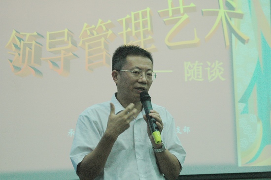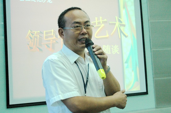 每节开头通过投影,用案例作引导(国庆大阅兵、“亮剑”、“激情燃烧的岁月”等片段都派上用场)。“领导们”畅所欲言,真知灼见,每有启发。胡燕副总经理讲领导权力不能滥用。要有品德、有修养、让人心悦诚服。且为官者要有担当,肯为下属排难解忧。叶总监谈到手指头理论,每个(下属)都是独立的个体,有特定的作用,无分贵贱,应协调加以使用。正如,张伟祥副总经理所谈,本无废物(人),有的是放错了地方的资源,可见每个员工(下属)都有其长处、优点。“管理从心开始”。身为领导要影响他人去实现既定的目标,大的方面当然要靠企业文化的内在推动力,靠愿景指引,让人有奔头与成就感。而实际管理中最有效的莫过于能打动人心,善于沟通交流。这就看领导者的品行与魅力了。对此,魏大华董事长总经理与郑楠党委书记在第四节感言中就与大家分享了他们的经验。郑书记谈了三点:1、做事先做人。以身作则至要。2、虚怀若谷。以诚待人,强调应保持良好的领导作风与工作作风,密切联系群众。3、是领导艺术。要“三多三少”——“多你少我、多赞少贬、多听少说”。魏总着重谈了德才兼备,以德为先话题。要有大局意识,认同企业的大目标,养成良好的合作态度,形成合力。认同在集体中营造批评与自我批评的氛围。做事不拘形式,关键看成效结果……
