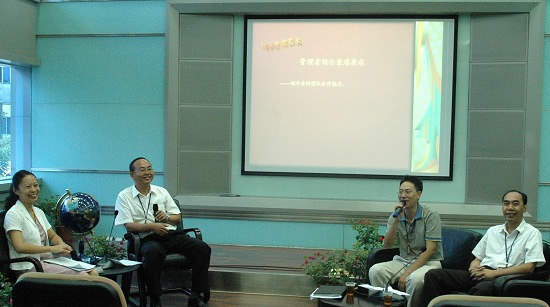 公司领导、主任以上管理人员、职能二支部全体党员参加。人力资源部高级经理李强主持,生产总监叶耀成、研究所高级经理卢其福以及黄喜梅主任任嘉宾主持。历时三个小时分四节议题,热议不断——第一节:“管理者综合素质要求”。涉及团队合作能力,如何增强影响力,激励、倾听能力的运用以及接受批评等;第二节:如何做一名优秀的管理者,有关执行力、是非观、大局观的问题;第三节是管理(领导)者谈领导艺术。关于方法、技巧、人格等的细节……