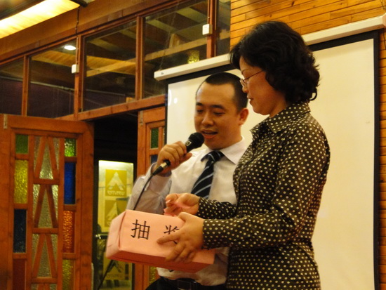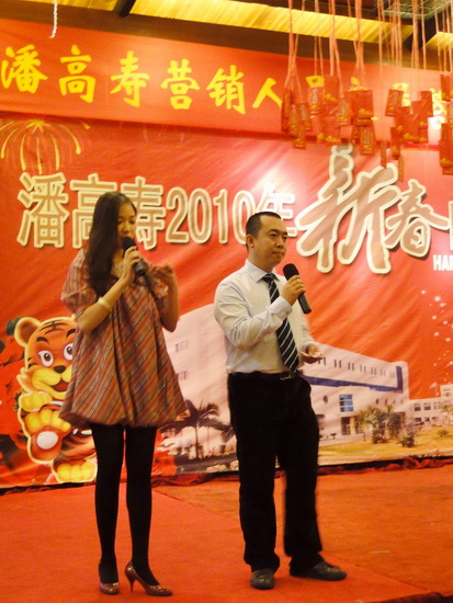 晚宴上,胡小华、徐鸯、戎全刚、张世钦等激情献唱、热舞助兴,台上节目精彩,台下欢声笑语,乐也融融。不时穿插的游戏、抽奖,让人既紧张又兴奋。业务人员常年出差在外,今天家人、战友欢聚在一起,感受着潘高寿这个大家庭的温暖与祝福,四处都弥漫着温馨气氛。战略发展部、销售部合唱的《朋友》、《真心英雄》、《明天会更好》都是他们对团队的情谊、对公司祝愿的最真挚表达。晚宴在领导班子合唱《同一首歌》中走向高潮,就如歌词所言,我们手拉手共同走过了风雨的岁月,相信在公司上下的共同努力下,我们会有更好的明天!