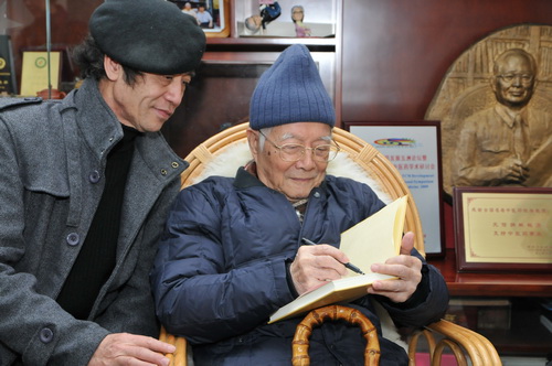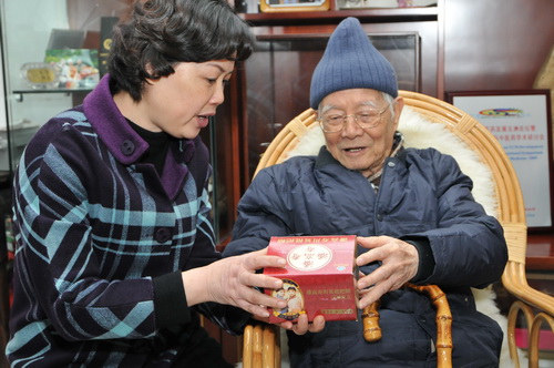 兔年新春来临之际,公司党委书记郑楠率领潘高寿企业文化小组、公司副总工程师卢其福、资讯部经理梁葆春、老同志林沃亮等会同开平市政府地方志办公室谭月圆主任以及来自邓老家乡的月山中学校长李溢南等领导一行看望了中医泰斗、国医大师邓铁涛老先生,向邓老及其家人拜早年。