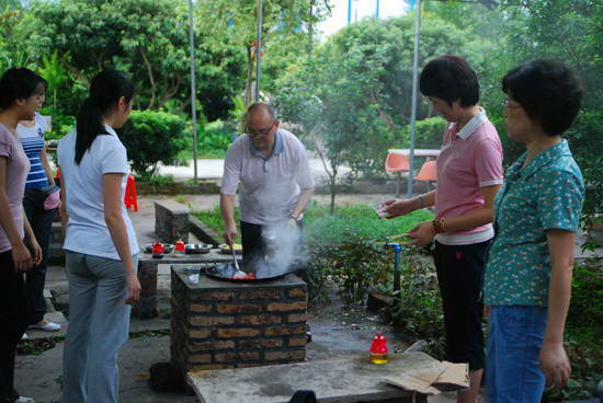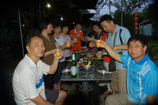 学员们还利用了半天的时间到喜来登户外拓展基地进行了拓展培训活动,通过定向越野项目拓展活动,明确了“我在什么位置,我要去哪?我怎么去?”的问题,受到了很大的启发。拓展后大家进行了一次别有趣味的野炊,9个小队的学员们分别团结协作,有条不紊地各自制作出一桌桌丰盛的菜肴。