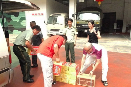 “八一”建军节当日,我司工会黄伯强主席和党办谭慕常干事一行代表公司到武警广东边防总队艺术团进行节日的慰问,向艺术团武警官兵们送上我司的消暑凉茶、润喉糖等产品。