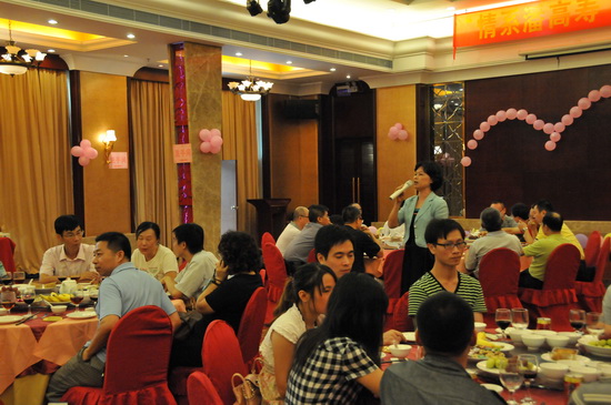 公司董事长、总经理魏大华,党委书记郑楠,工会主席黄伯强等全体公司领导班子及共青团、人力资源、生产、营销、研发、设备和质量等部门的主要负责人与近80名家在外地的未婚大学生济济一堂。鲜美的岭南佳果、香甜的应节月饼配上美酒佳肴。温馨的亲情、浓浓的节日气氛充满着宽敞而华丽的大厅。