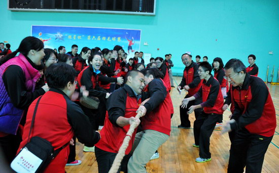 11月28日,上午2013白云山潘高寿公司评先表彰暨康体运动会在广州荔湾体育馆举行。800名员工欢聚一堂。领导致词,表彰先进,康体活动······潘高寿人豪情满怀、斗志昂扬,总结成绩,回顾和颂扬潘高寿123周年的改革发展光辉历程与业绩······ 大会由工会主席梁志平主持,公司董事长、党委书记魏大华,总经理杨东升分别致词,指出公司在集团的正确领导下,围绕资源效益“136工程”,生产经营、文化建设等方面取得的好成绩,对员工们一年来辛勤的付出表示感谢。董事长、党委书记魏大华宣读了《关于表彰2013年度先进个人和集体的决定》,对公司在开展“500强·500亿百分制双达标”竞赛活动中涌现出来的个人和先进集体予以表彰和颁奖,号召员工们向他们学习,积极进取,开拓创新,再创佳绩。员工们表示同心协力,共度时艰,迎难而上,争取胜利。 在康体活动中这种进取的精神得到充分的体现。员工们在“鸿运当头”、“力拔山河”、“财源滚滚”、“运宝到家”四个项目中表现出很强的团队意识与协作能力。期间,公司班子成员分别为四十年和三十年工龄员工颁奖,最令人瞩目是以九个工会分会为单位的拔河比赛把大会推向高潮,采购供应分会勇夺头名······展望未来,员工们意气风发,表示全力冲刺迎新年,为实现潘高寿十二·五规划、振兴“大南药”、发展“大健康”作出新贡献。 (工会 党办)