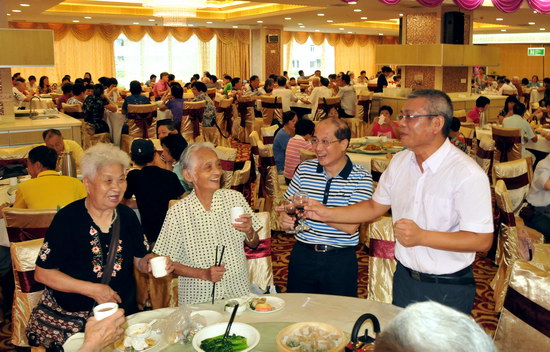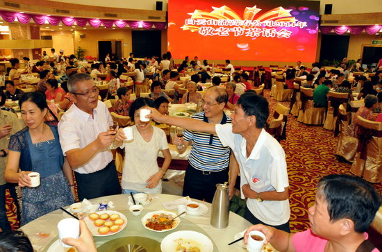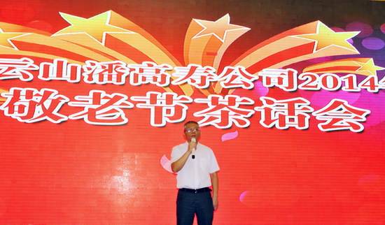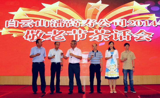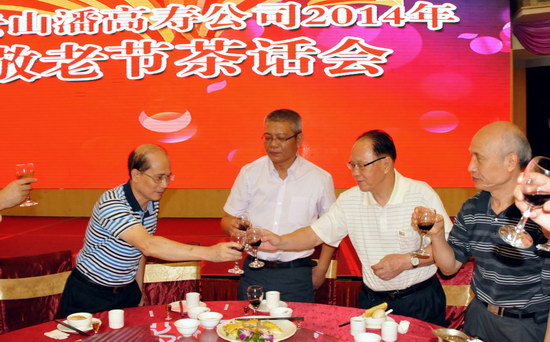 敬老节前夕,我司在东江万豪酒家召开2014年度金秋敬老茶话会。500多名退休职工欢聚一堂。公司班子成员、各部门总监及工会各分会主席出席茶话会。董事长总经理杨东升,纪委书记、工会主席梁志平分别致词祝酒,感怀老员工们为企业所做的贡献,并祝他们健康长寿,欣祝企业前程锦绣。